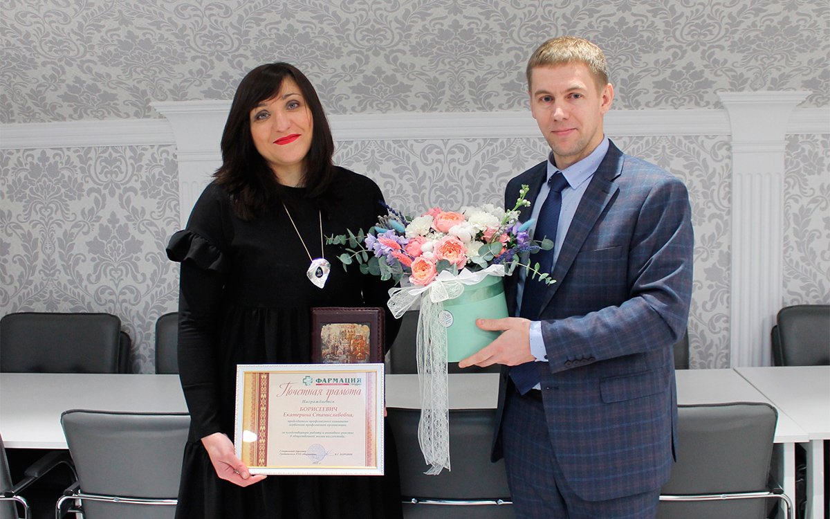 Сегодня сотрудники Гродненского РУП «Фармация» торжественно поздравляли Екатерину Станиславовну Борисеевич, председателя первичной профсоюзной организации Гродненского РУП «Фармация», с повышением в должности. Екатерина Станиславовна назначена генеральным директором Витебского РУП «Фармация».