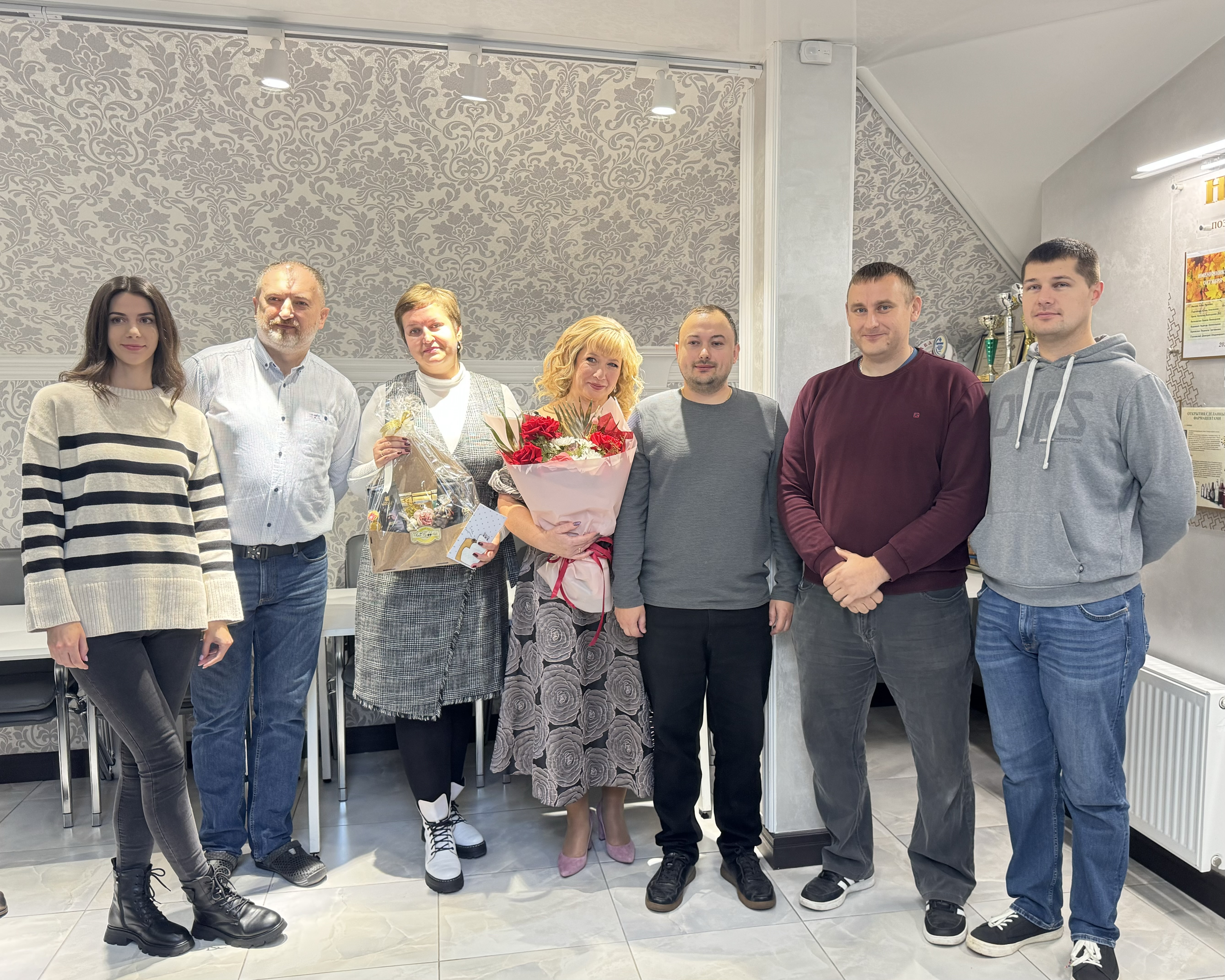 Пришли поздравить именинницу сотрудники и управления, и аптек, ведь Наталья Викторовна на нашем предприятии важнейшее связующее в сложном мире технологий, а еще она трудится на благо нашего предприятия около 30 лет!