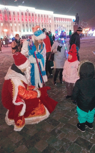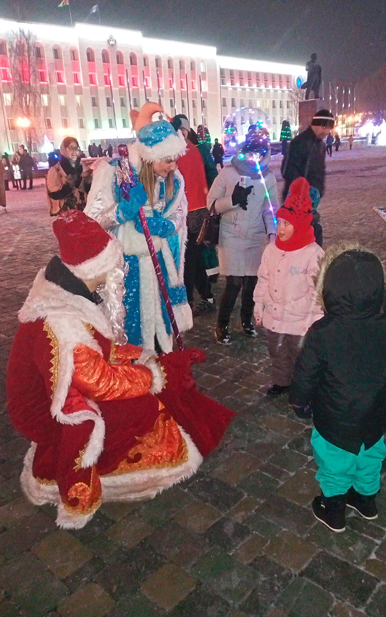 Работники предприятия не только подарили гостям и жителям Гродно яркие эмоции и атмосферные фотографии, но и порадовали детишек, которые с восторгом рассказывали стихи, получая за них вкусные и полезные сладости. В финале праздника новогодние персонажи зажгли огоньки на главной елочке города на Советской площади.
