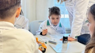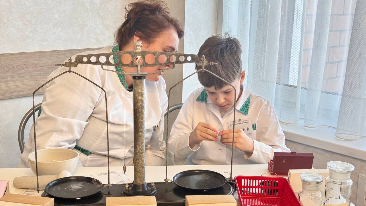 Ребята помогают коту Фармику справится со сложными задачами. Школьники измельчают в ступках настоящую субстанцию, взвешивают на аптекарских весах и высчитывают дозировки. Симуляционная аптека дополнена местом врача, где ребята проводят осмотр пациента, ставят диагнозы и выписывают рецепт.